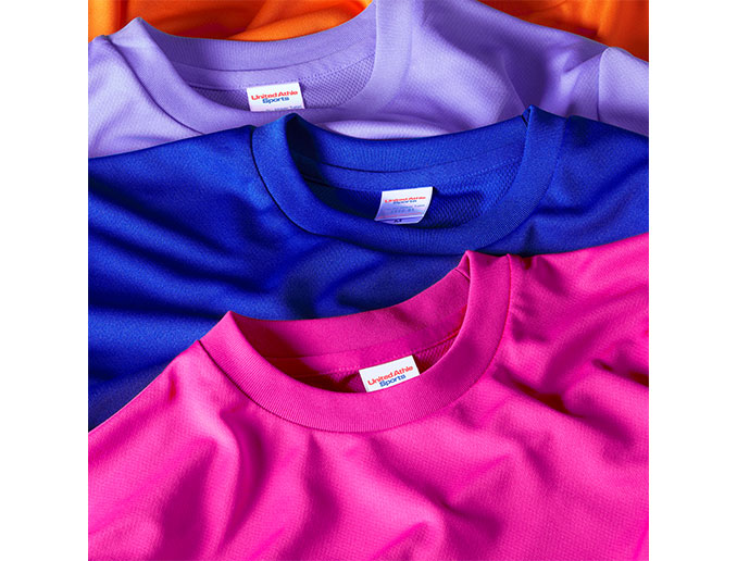 速乾性と通気性に加え、UVカット機能などもあるドライアスレチックTシャツ。ポリエステル100%素材は4.1オンスと着心地も軽量なため、ハードなスポーツ用としてもおすすめです。また夏場のイベントやキャンペーンにおけるオリジナルユニフォームのボディとしても人気です。