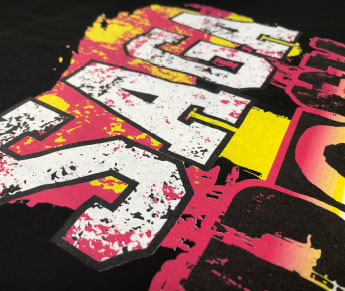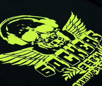 発色の強い、ビビットなネオンカラーのプリントです。特色の蛍光インクでプリントします。
