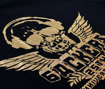 金・銀の箔シートを熱プレスして印刷した金銀プリント。光沢がある輝きに仕上がります。